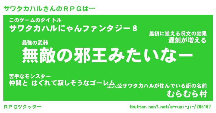 | 男性向けラノベタイトル風あだ名 | 『サワタカハルアートオンライン』 |