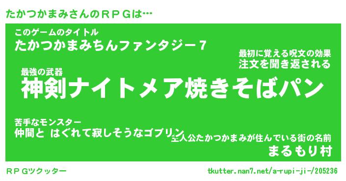 | 胡散臭い通販商品みたいなあだ名 | 『モテモテ間違いなし霊験あらたかなお札…その名も「たかつかまみ」』 |