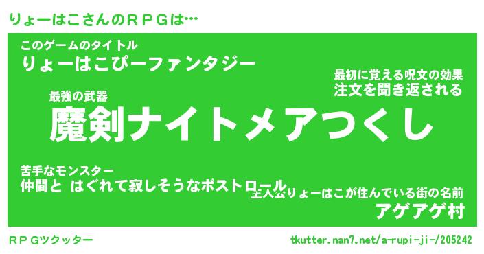 | ファンタジー風あだ名 | 『リョフェル』『エターナルリョーハコー』 |