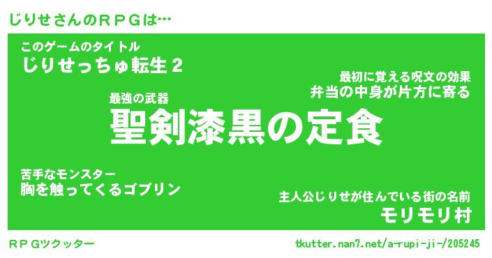 | 男性向けラノベタイトル風あだ名 | 『じりせの憂鬱』 |