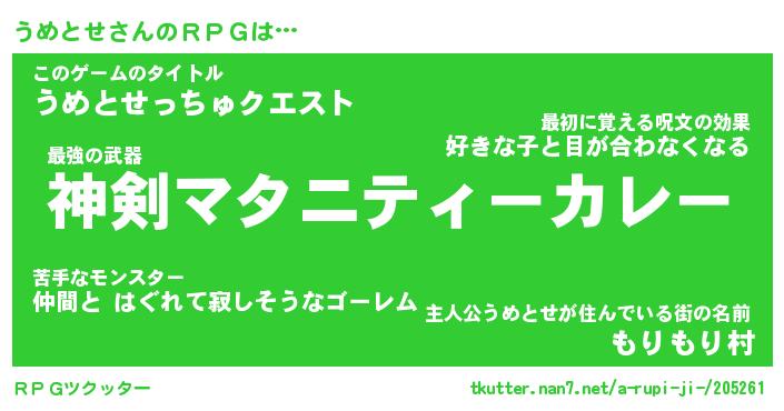 | ファンタジー風あだ名 | 『ウメフェル』『エターナルウメトセー』 |