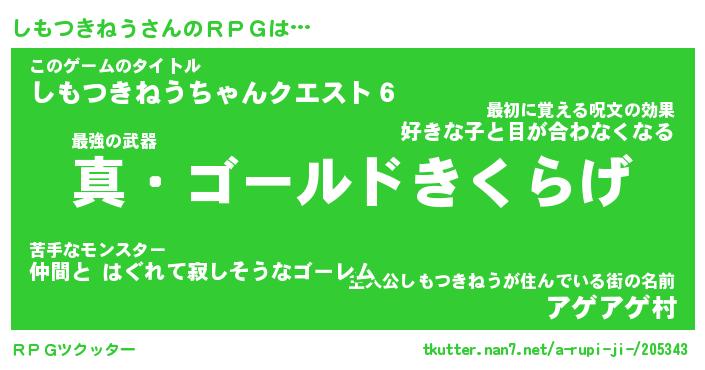| 伝説のあだ名 | 『封印されしスナイパーしもつきねう』 |