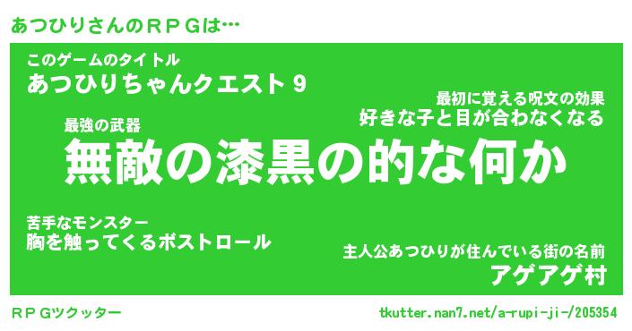 | 伝説のあだ名 | 『封印されしスナイパーあつひり』 |