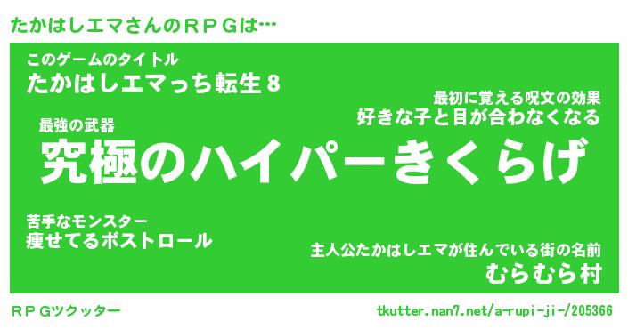 | 伝説のあだ名 | 『不死鳥の竜騎士たかはしエマ』 |