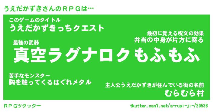 | 胡散臭い通販商品みたいなあだ名 | 『億万長者になれるブレスレット…その名も「うえだかずき」』 |