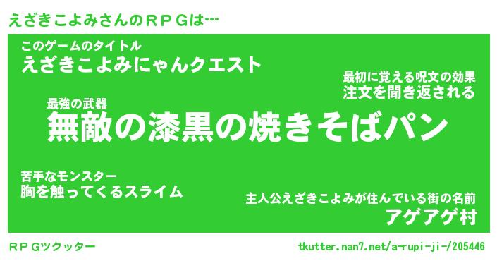 | 男性向けラノベタイトル風あだ名 | 『エザキコヨミアートオンライン』 |