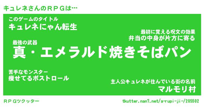 | ファンタジー風あだ名 | 『キュフェル』『エターナルキュレネー』 |