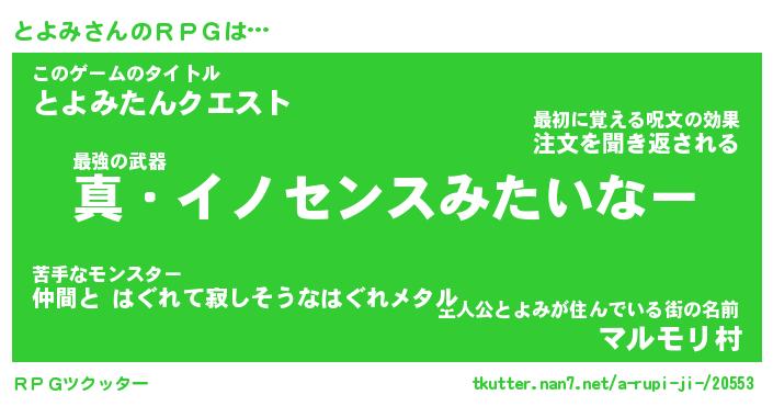 | 男性向けラノベタイトル風あだ名 | 『トヨミアートオンライン』 |