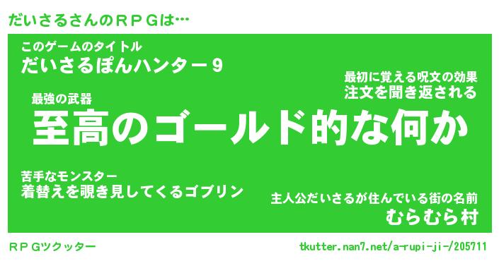 | 女子向けラノベタイトル風あだ名 | 『だいさる姫と円卓の騎士』 |