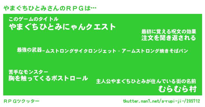 | 男性向けラノベタイトル風あだ名 | 『ヤマグチヒトミアートオンライン』 |