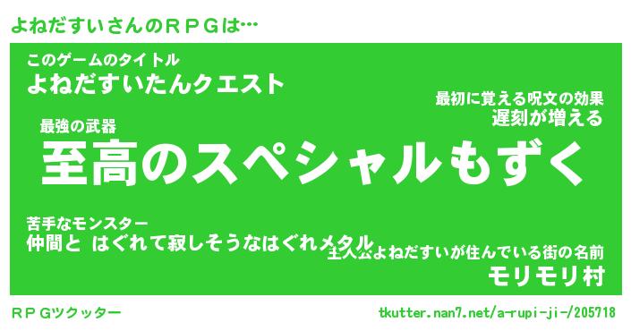 | 料理風あだ名 | 『節約★よねだすいと油揚げの玉子丼』 |