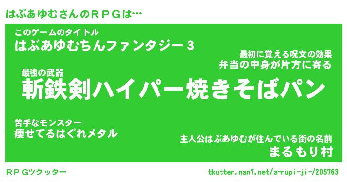 | ファンタジー風あだ名 | 『ハブフェル』『エターナルハブアユムー』 |