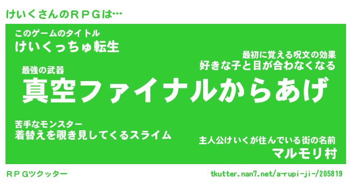 | ファンタジー風あだ名 | 『ケイフェル』『エターナルケイクー』 |