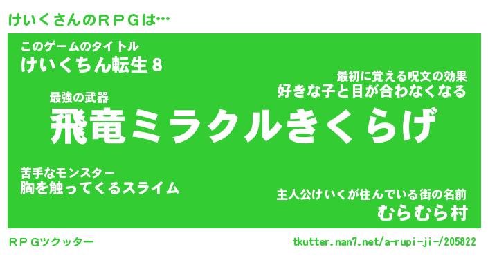 | 伝説のあだ名 | 『封印されし竜騎士けいく』 |