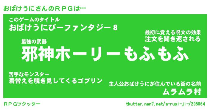 | ファンタジー風あだ名 | 『オバフェル』『エターナルオバケウニー』 |