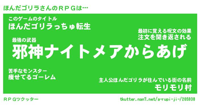 | 胡散臭い通販商品みたいなあだ名 | 『億万長者になれる霊験あらたかなお札…その名も「ほんだゴリラ」』 |