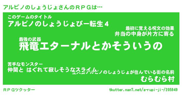 | 胡散臭い通販商品みたいなあだ名 | 『億万長者になれる水晶球…その名も「アルビノのしょうじょ」』 |