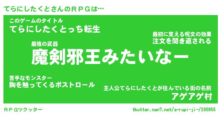 | 胡散臭い通販商品みたいなあだ名 | 『必ず成功する水晶球…その名も「てらにしたくと」』 |