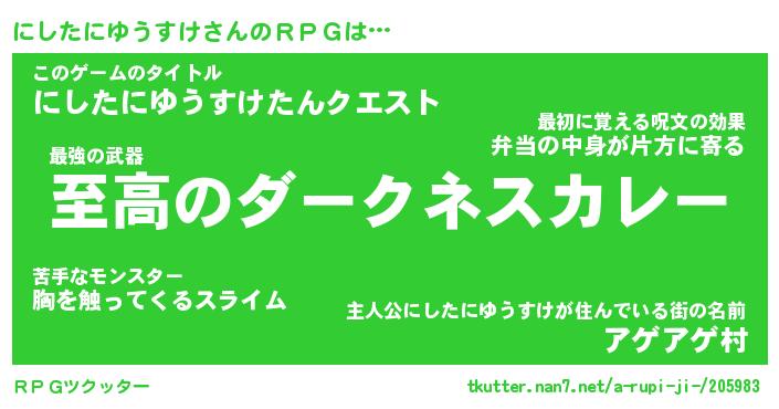 | 男性向けラノベタイトル風あだ名 | 『ニシタニユウスケアートオンライン』 |