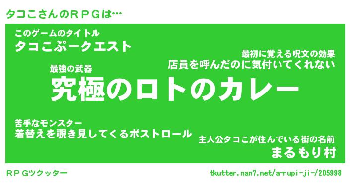 | ファンタジー風あだ名 | 『タコフェル』『エターナルタココー』 |