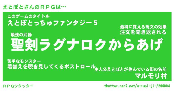 | 男性向けラノベタイトル風あだ名 | 『えとぽとの憂鬱』 |
