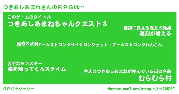 | 男性向けラノベタイトル風あだ名 | 『ツキアシアマネアートオンライン』 |