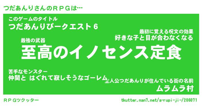 | 胡散臭い通販商品みたいなあだ名 | 『モテモテ間違いなし霊験あらたかなお札…その名も「つだあんり」』 |