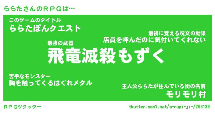| ファンタジー風あだ名 | 『ララフェル』『エターナルララター』 |