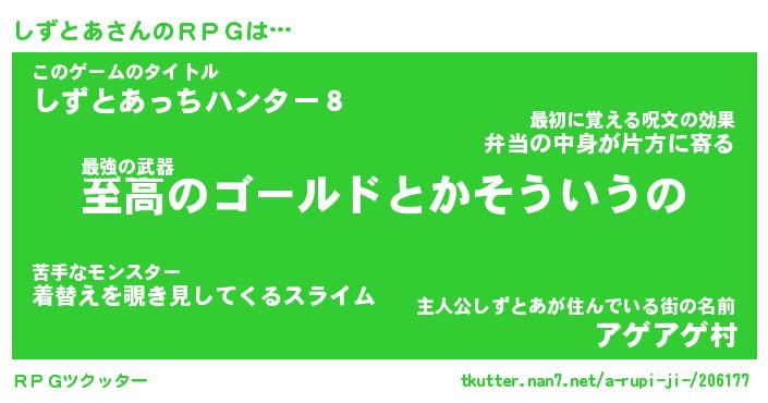 | ファンタジー風あだ名 | 『シズフェル』『エターナルシズトアー』 |