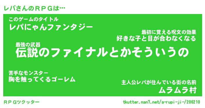 | ファンタジー風あだ名 | 『レパフェル』『エターナルレパー』 |
