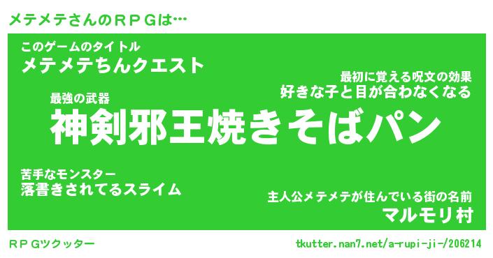 | 男性向けラノベタイトル風あだ名 | 『メテメテの憂鬱』 |