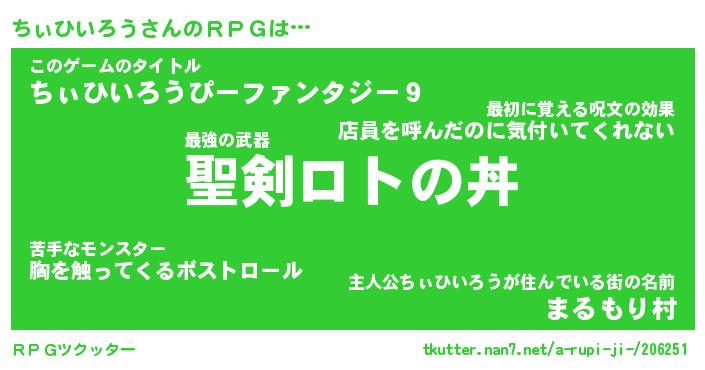 | 伝説のあだ名 | 『伝説の竜騎士ちぃひいろう』 |