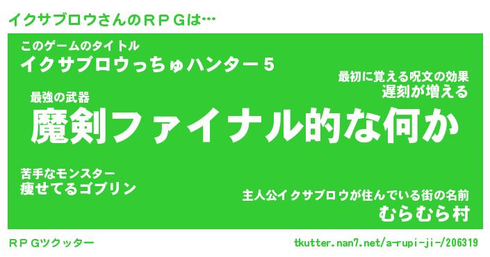 | 男性向けラノベタイトル風あだ名 | 『イクサブロウの憂鬱』 |