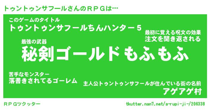| 男性向けラノベタイトル風あだ名 | 『トゥントゥンサフールの憂鬱』 |
