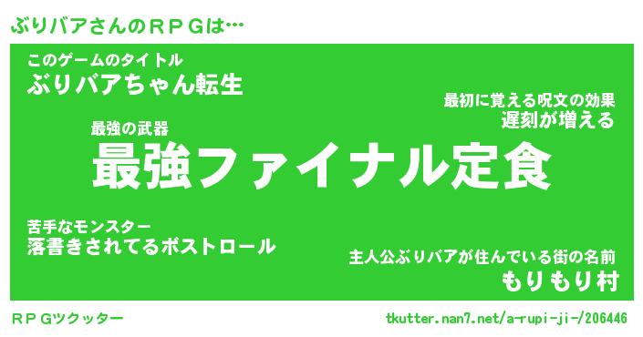 | 男性向けラノベタイトル風あだ名 | 『ブリバアアートオンライン』 |