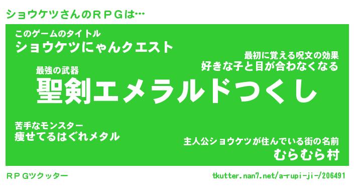 | 胡散臭い通販商品みたいなあだ名 | 『必ず成功する霊験あらたかなお札…その名も「ショウケツ」』 |