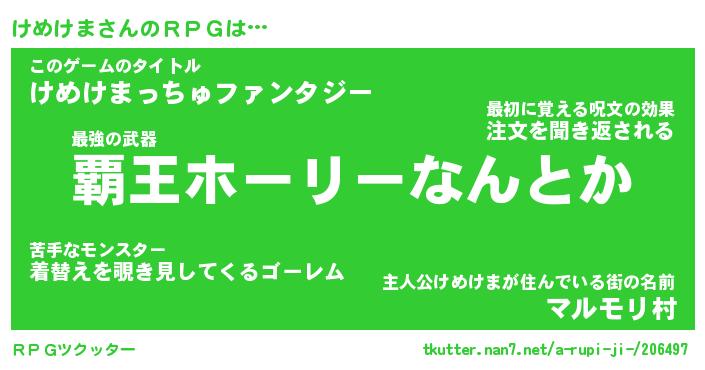 | ファンタジー風あだ名 | 『ケメフェル』『エターナルケメケマー』 |