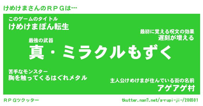 | 伝説のあだ名 | 『封印されし竜騎士けめけま』 |