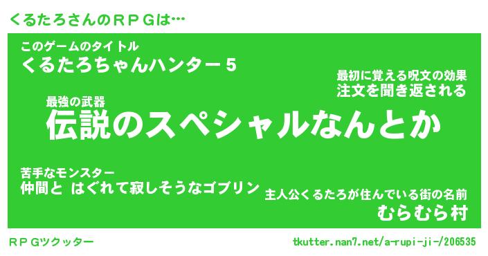 | 男性向けラノベタイトル風あだ名 | 『くるたろの憂鬱』 |