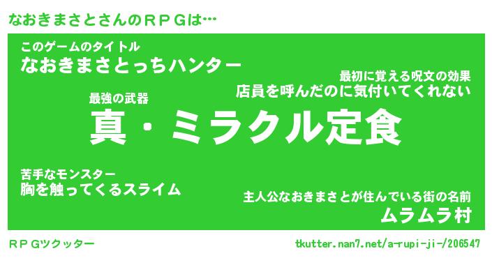 | 男性向けラノベタイトル風あだ名 | 『ナオキマサトアートオンライン』 |