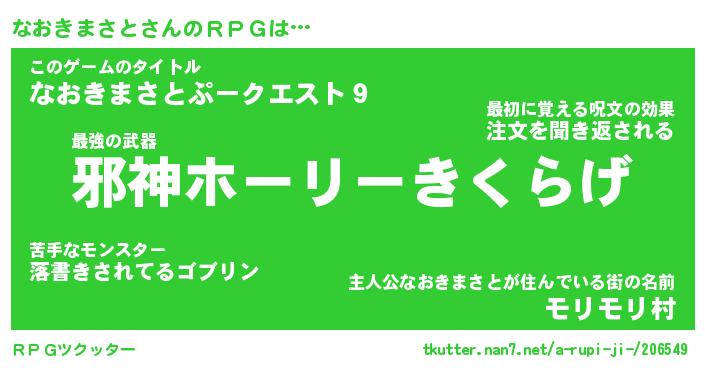 | 伝説のあだ名 | 『封印されし傭兵なおきまさと』 |