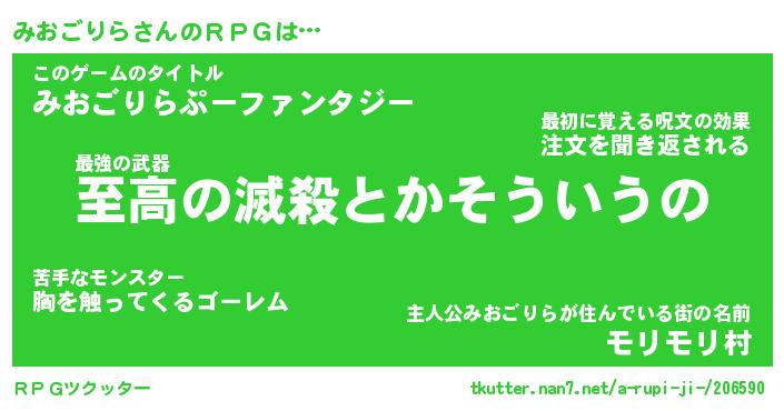 | 胡散臭い通販商品みたいなあだ名 | 『モテモテ間違いなし霊験あらたかなお札…その名も「みおごりら」』 |