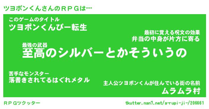 | 男性向けラノベタイトル風あだ名 | 『ツヨポンクンアートオンライン』 |