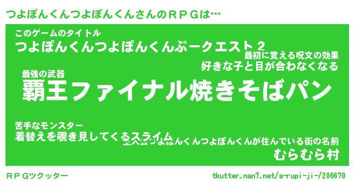 | 胡散臭い通販商品みたいなあだ名 | 『億万長者になれる水晶球…その名も「つよぽんくんつよぽんくん」』 |
