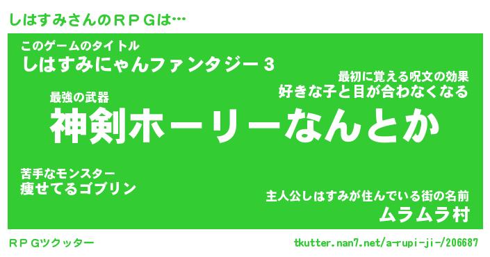| ファンタジー風あだ名 | 『シハフェル』『エターナルシハスミー』 |