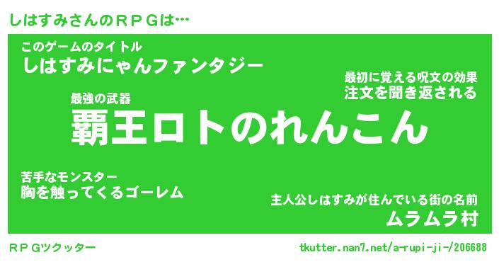 | ヘコむあだ名 | 『しはふぇ~』『牛乳』『しはぷりん』 |