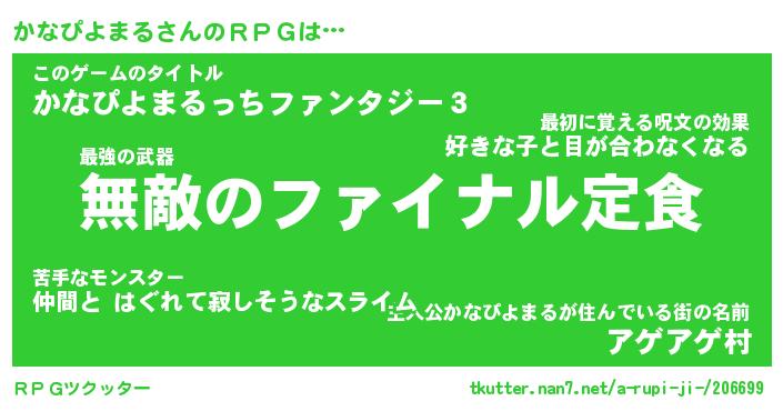 | 胡散臭い通販商品みたいなあだ名 | 『億万長者になれるブレスレット…その名も「かなぴよまる」』 |