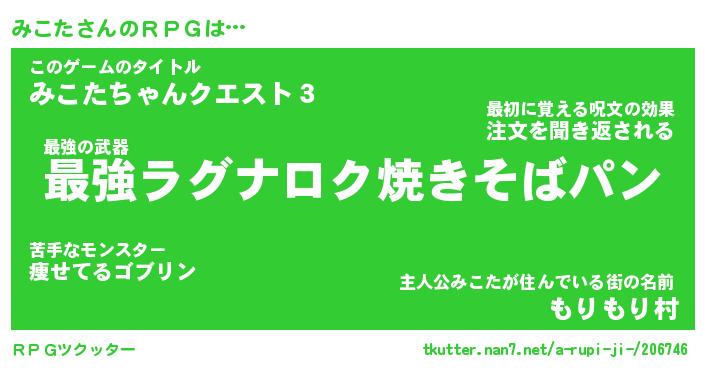 | 男性向けラノベタイトル風あだ名 | 『ミコタアートオンライン』 |