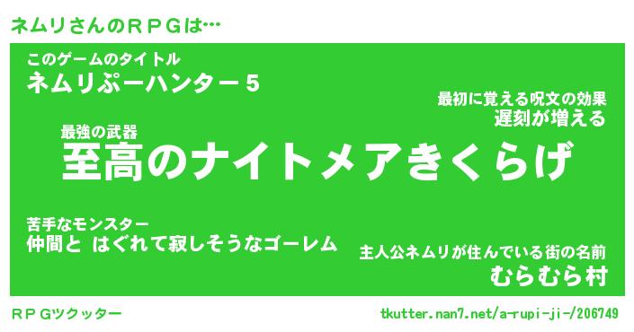 | ファンタジー風あだ名 | 『ネムフェル』『エターナルネムリー』 |