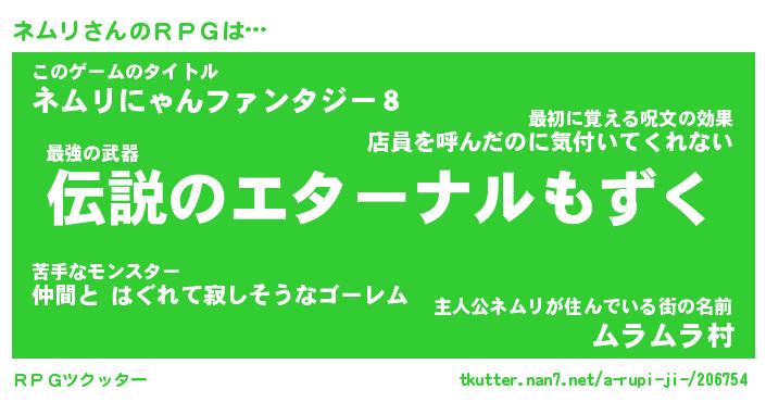 | ファンタジー風あだ名 | 『ネムフェル』『エターナルネムリー』 |